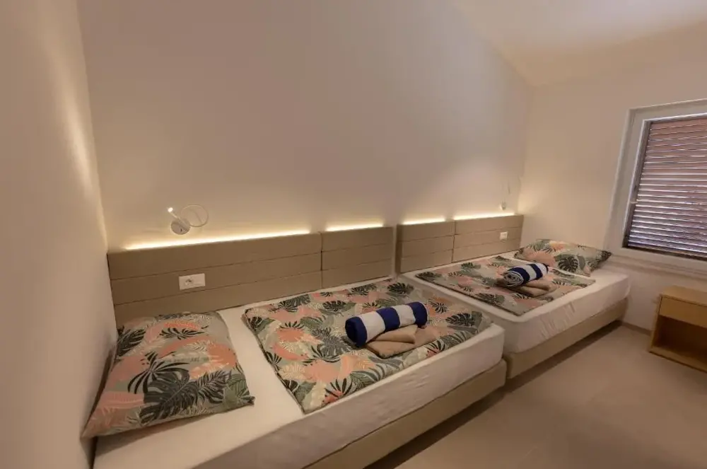 Beachfront Location: Apartman Solenta in Stomorska offers direct beachfront access with stunning sea views. Guests can relax on the terrace or in the garden, enjoying the serene surroundings. Spacious Accommodations: The apartment features two bedrooms and a living room, providing ample space for families.