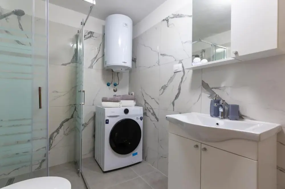 More about ElisaComfortable Accommodations: Haus Marina in Zagorje offers a holiday home with two bedrooms and two bathrooms. The property features a terrace, balcony, and outdoor swimming pool. Free WiFi is available throughout the stay. Modern Amenities: Guests can enjoy a fully equipped kitchen, washing machine, dishwasher, and TV. The dining area includes a table and seating space.